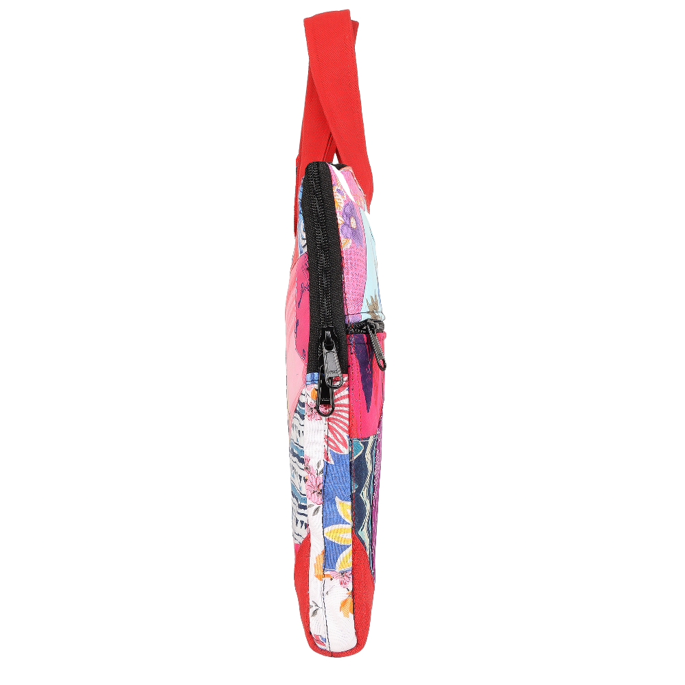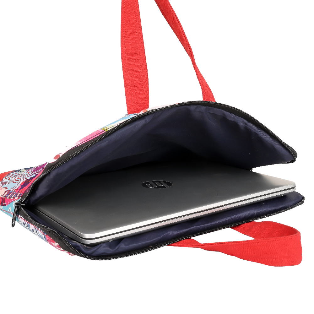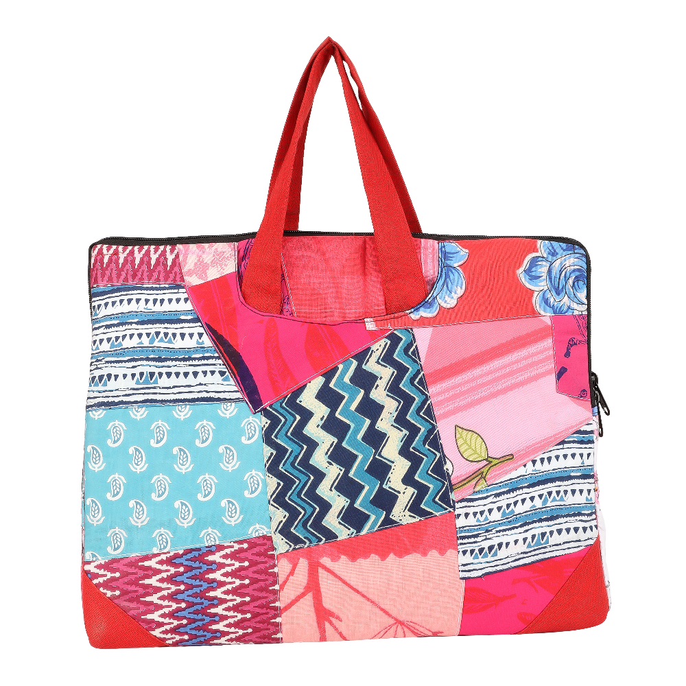 Stand tall with style. This handcraftedcotton laptop bag by Indha features a charming hand-embroidered giraffe motif—a symbol of grace, vision, and standing out. Set against a backdrop of vibrant cotton patchwork, this unique piece blends artistry with everyday function.