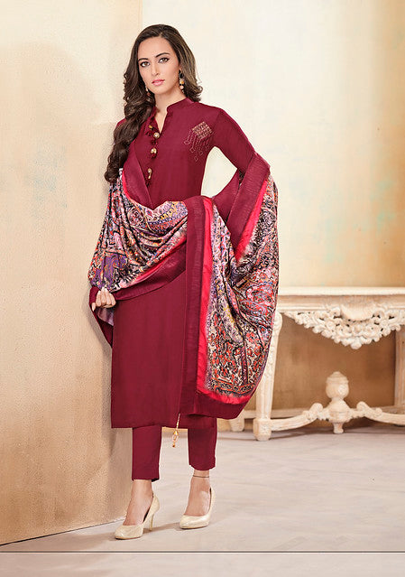 Work: Hand Work and Embroidered Butta Work with Digital Print Dupatta